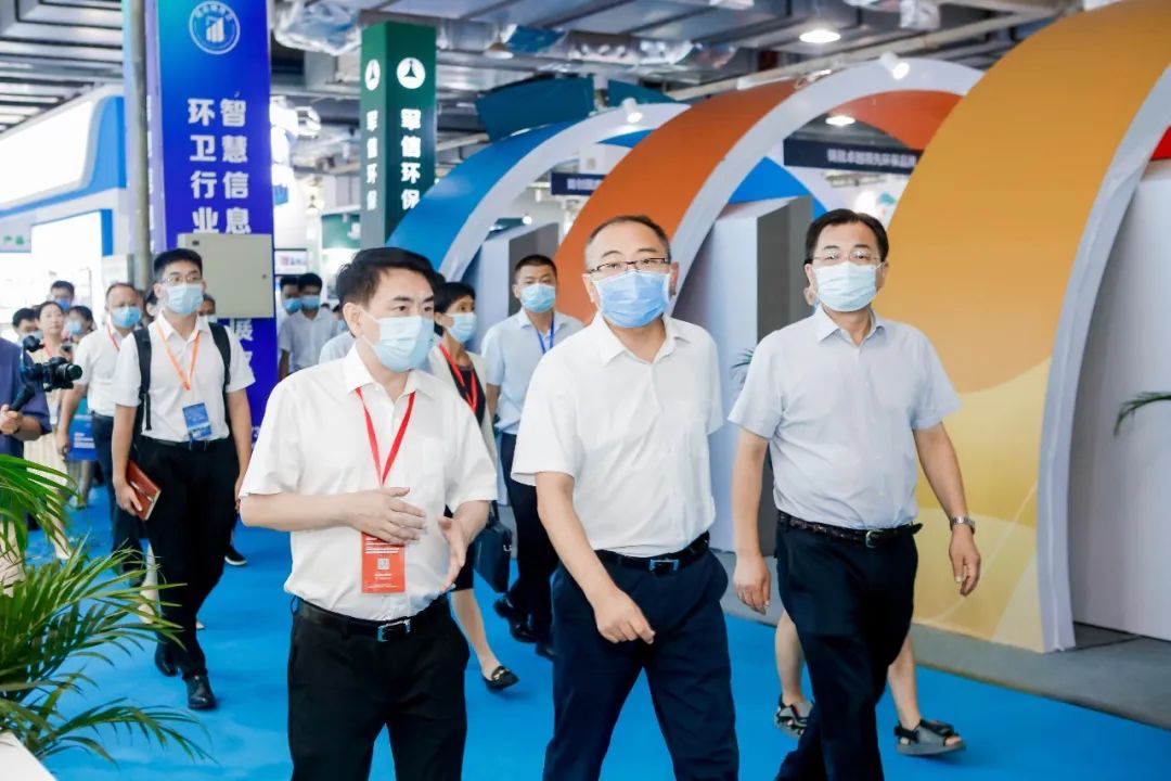 住建部城市建設(shè)司副司長(zhǎng)楊宏毅(左二)、湖南省政府副秘書長(zhǎng)黎咸興(右一)等領(lǐng)導(dǎo)一行蒞臨高能環(huán)境展位參觀指導(dǎo)