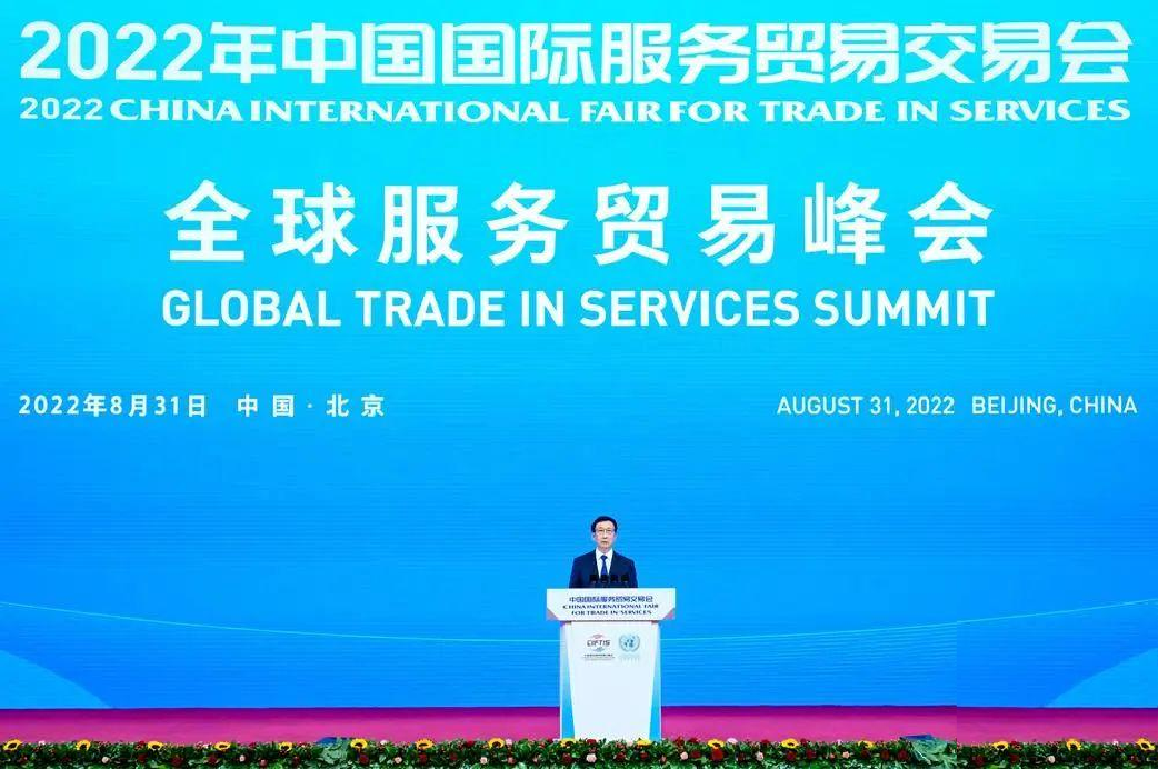 中共中央政治局常委、國務(wù)院副總理韓正出席2022年中國國際服務(wù)貿(mào)易交易會全球服務(wù)貿(mào)易峰會并發(fā)表主旨演講。
