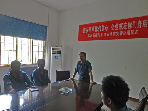 6月9日中午12點(diǎn)30分,北京高能時(shí)代環(huán)境技術(shù)股份有限公司工會(huì)在株洲項(xiàng)目部舉行了“雅安同事你們放心,企業(yè)就在你的身后”的捐贈(zèng),為四川雅安地震中受災(zāi)的兩名員工李根均、李根平兄弟送去慰問與關(guān)懷。