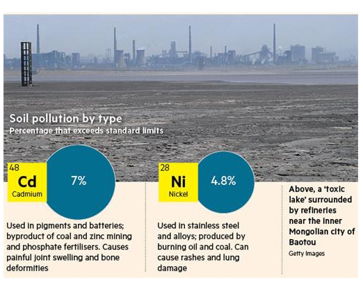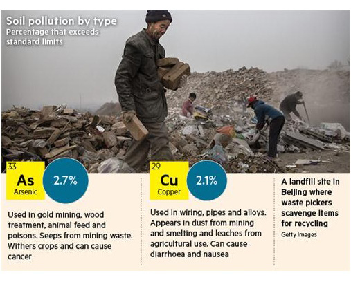 結(jié)果令人震驚:近五分之一的可耕種土地受到了污染。公布內(nèi)容并不包括污染的分布情況,或者哪里是問題最嚴(yán)重的熱點(diǎn)。