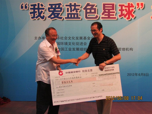 為迎接6.5世界環(huán)境日,進(jìn)一步提高廣大公眾的環(huán)境意識(shí)與環(huán)保理念,2012年6月8日,中華社會(huì)文化發(fā)展基金會(huì)、中國環(huán)境文化促進(jìn)會(huì)、聯(lián)合國工業(yè)發(fā)展組織國際環(huán)境監(jiān)督管理機(jī)構(gòu)在京聯(lián)合舉辦“我愛藍(lán)色星球”主題書畫筆會(huì)公益活動(dòng)。原文化部常客仁副部長出席書畫筆會(huì),并為“藍(lán)色星球環(huán)保在行動(dòng)”題詞;來自中國書畫藝術(shù)研究院山東分院、張家界書畫院等全國各地和北京共計(jì)六十多位環(huán)保愛心書畫藝術(shù)家聚集一堂,現(xiàn)場(chǎng)揮毫,捐贈(zèng)佳作,以呼喚社會(huì)各界更多仁人志士躋身環(huán)境保護(hù)公益事業(yè)。