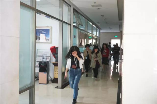 在疏散演習(xí)過(guò)程中,員工們按照疏散線路有秩序撤離,并用濕毛巾(濕手帕)捂住口鼻,彎腰前行。