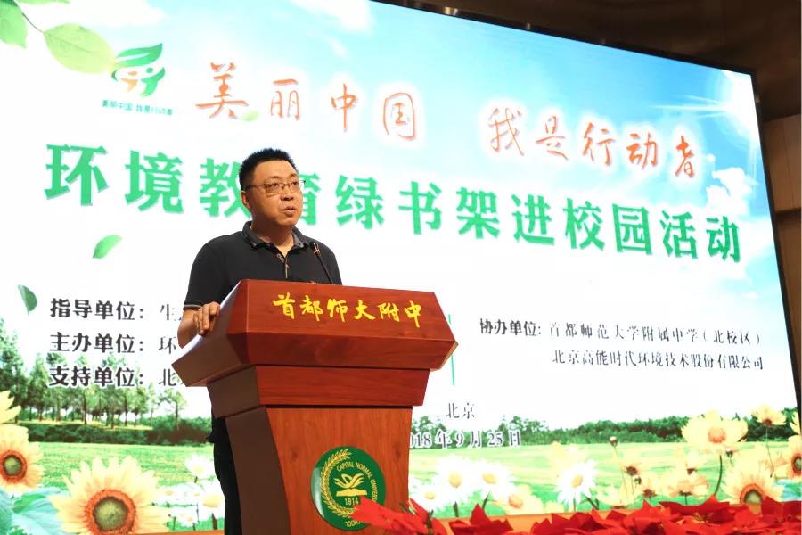 為促進(jìn)環(huán)境保護(hù)和生態(tài)文明知識進(jìn)校園,推動北京市中小學(xué)環(huán)境教育工作,9月25日,由《環(huán)境教育》雜志社主辦,生態(tài)環(huán)境部宣傳教育司指導(dǎo),高能環(huán)境協(xié)辦的“綠書架”進(jìn)校園公益活動在北京市首都師范大學(xué)附屬中學(xué)(北校區(qū))舉行。北京市環(huán)保宣傳中心主任張立新、《環(huán)境教育》雜志社社長王曉飛等領(lǐng)導(dǎo)出席活動。