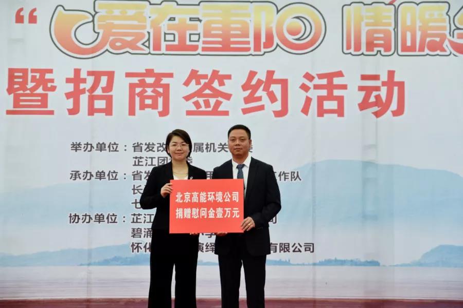 高能環(huán)境代表鄧靈燕女士向七甲坪村捐贈(zèng)慰問金