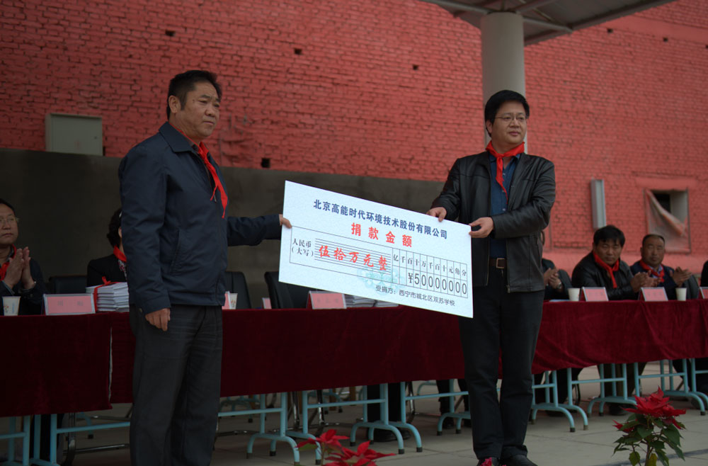 高能環(huán)境副總經理齊志奇在捐贈儀式上這樣表示: 希望小學,對于我們來說,付出的可能只是一小部分,可改變的,也許是這些孩子的整個人生,希望用我們的實際行動,帶給孩子們溫暖與關愛,同時激發(fā)廣大社會人士助人為樂的美好情懷,弘揚社會正能量。熱心公益,致力環(huán)保,一直是我們不變的情懷,高能環(huán)境與西寧市湟水投資管理有限公司合資成立環(huán)保公司,投資建設了西寧市第一個PPP項目——污泥綜合處置項目,并正致力于為西寧市創(chuàng)建文明城市、更好地保護西寧市乃至青海省生態(tài)環(huán)境做出更大貢獻!