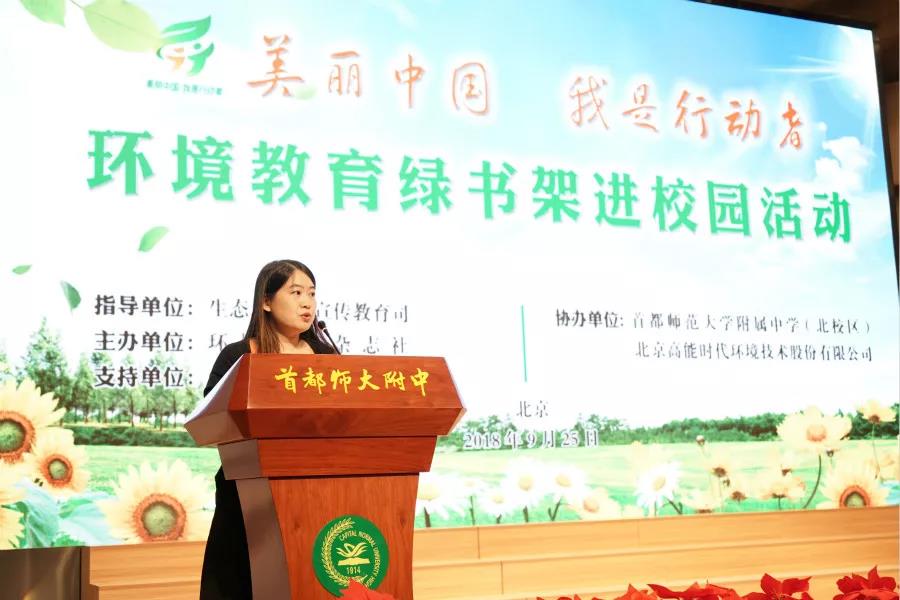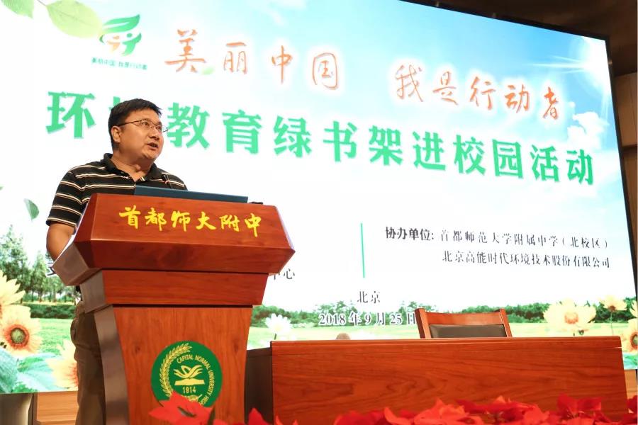 為促進(jìn)環(huán)境保護(hù)和生態(tài)文明知識(shí)進(jìn)校園,推動(dòng)北京市中小學(xué)環(huán)境教育工作,9月25日,由《環(huán)境教育》雜志社主辦,生態(tài)環(huán)境部宣傳教育司指導(dǎo),高能環(huán)境協(xié)辦的“綠書架”進(jìn)校園公益活動(dòng)在北京市首都師范大學(xué)附屬中學(xué)(北校區(qū))舉行。北京市環(huán)保宣傳中心主任張立新、《環(huán)境教育》雜志社社長王曉飛等領(lǐng)導(dǎo)出席活動(dòng)。