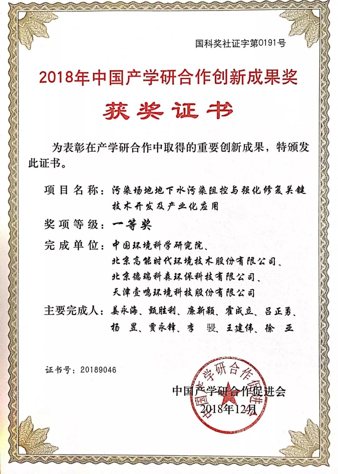 會(huì)議表彰了2018年在產(chǎn)學(xué)研合作、成果轉(zhuǎn)化、軍民融合、工匠精神等方面作出貢獻(xiàn)的先進(jìn)單位和個(gè)人,高能環(huán)境憑借“地下水污染阻控與多級強(qiáng)化修復(fù)關(guān)鍵技術(shù)及應(yīng)用”(以下簡稱為“技術(shù)應(yīng)用”)榮獲2018年中國產(chǎn)學(xué)研合作創(chuàng)新成果一等獎(jiǎng)。據(jù)悉,該獎(jiǎng)項(xiàng)是目前我國面向產(chǎn)學(xué)研協(xié)同創(chuàng)新的最高榮譽(yù),由科技部和國家科技獎(jiǎng)勵(lì)辦公室批準(zhǔn),國家發(fā)改委等24個(gè)“國”字頭單位支持,中國產(chǎn)學(xué)研合作促進(jìn)會(huì)設(shè)立和頒發(fā)。
