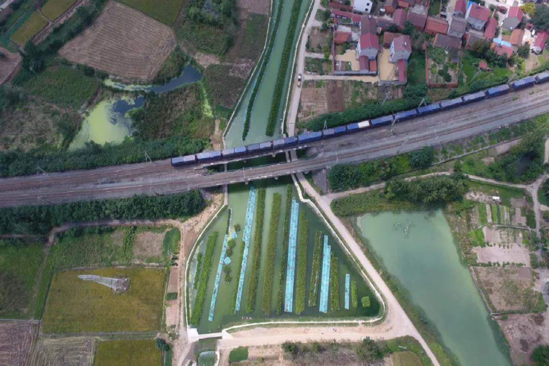 鐘祥市南泉河重金屬污染治理工程生態(tài)浮島航拍圖
